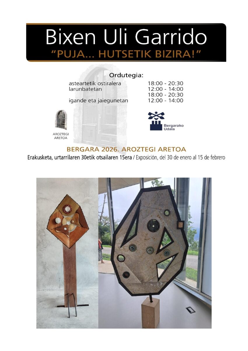 AROZTEGI: OSTIRALEAN INAGURATUKO DA BIXEN ULI GARRIDO-REN “PUJA…HUTSETIK BIZIRA!” ERAKUSKETA Posted on 2026/01/29 by jardun
