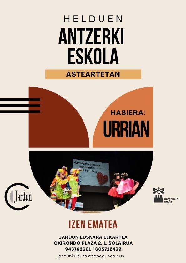 ASTEARTEAN HASIKO DA HELDUEN ANTZERKI ESKOLA!! Posted on 2025/10/08 by jardun Datorren asteartean, urriaren 14an, hasiko da Jarduneko helduen antzerki eskola. Klaseak arratsaldeko 19:15etik 20:30era izango dira Zabalotegi aretoan. Probatzeko gogoa izanez gero, oraindik denboraz zabiltza!! Animatu eta zatoz probatzera! Elkarbanatu:TwitterFacebookEmail