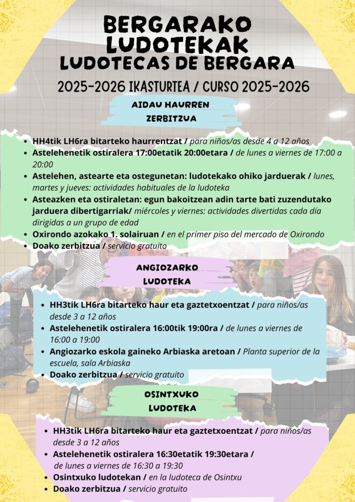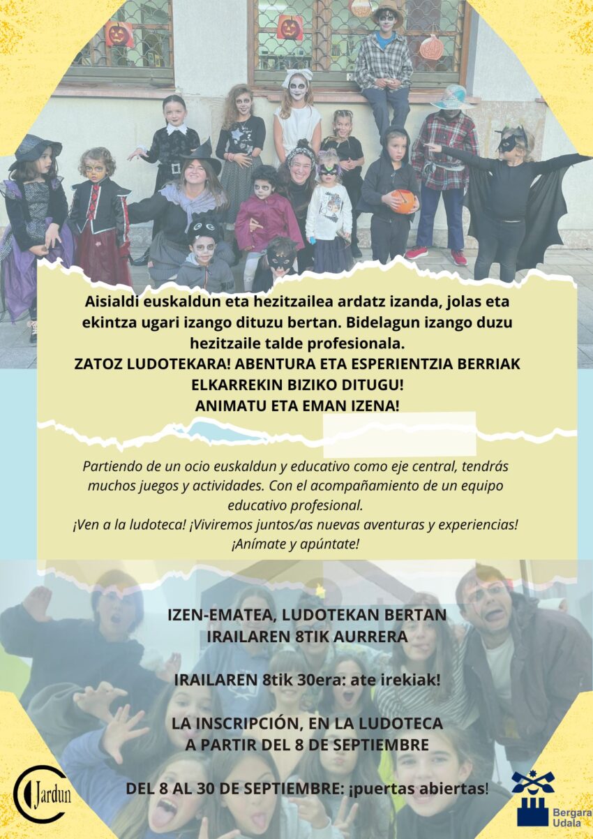 ASTELEHENEAN, IRAILAREN 8AN, LUDOTEKEK ATEAK ZABALDUKO DITUZTE!! Posted on 2025/09/052025/09/05 by jardun Datorren irailaren 8an, AIDAU haurren zerbitzua eta Angiozar eta Osintxuko ludotekek, ateak irekiko dituzte! Irailean zehar aukera egongo da zerbitzura gerturatu eta ezagutu ahal izateko. Zatoz!!! Elkarbanatu:TwitterFacebookEmail