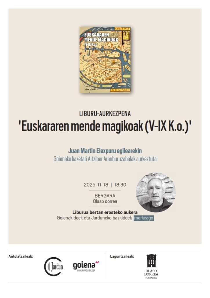 Goiena Komunikazio Taldearen eta Jardun Euskara Elkartearen eskutik, eta Olaso Dorrea fundazioaren laguntzarekin, azaroaren 18an, martitzena, aurkeztuko du lana Juan Martin Elexpuruk, 18:30ean, Olaso Dorrean, Goienako kazetari Aitziber Aranburuzabalak gidatuta.