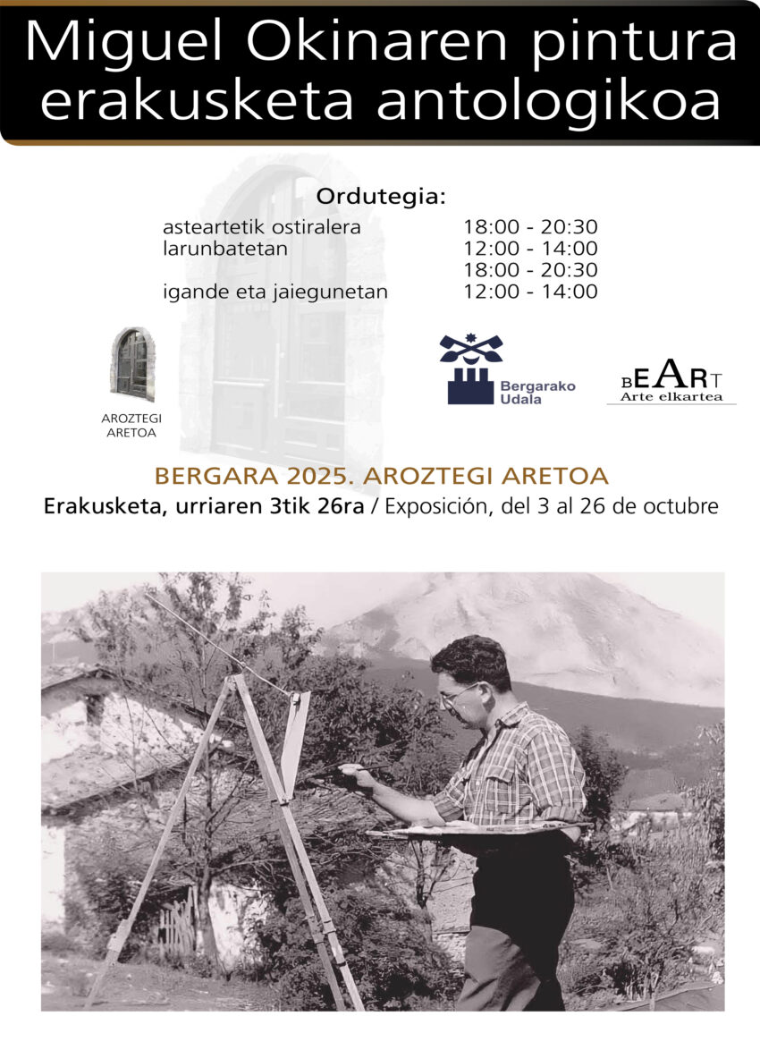 AZKEN EGUNAK….AROZTEGI ARETOAN MIGUEL OKINAREN PINTURA ERAKUSKETA ANTOLOGIKOA IKUSTEKO Posted on 2025/10/21 by jardun Elkarbanatu:TwitterFacebookEmail