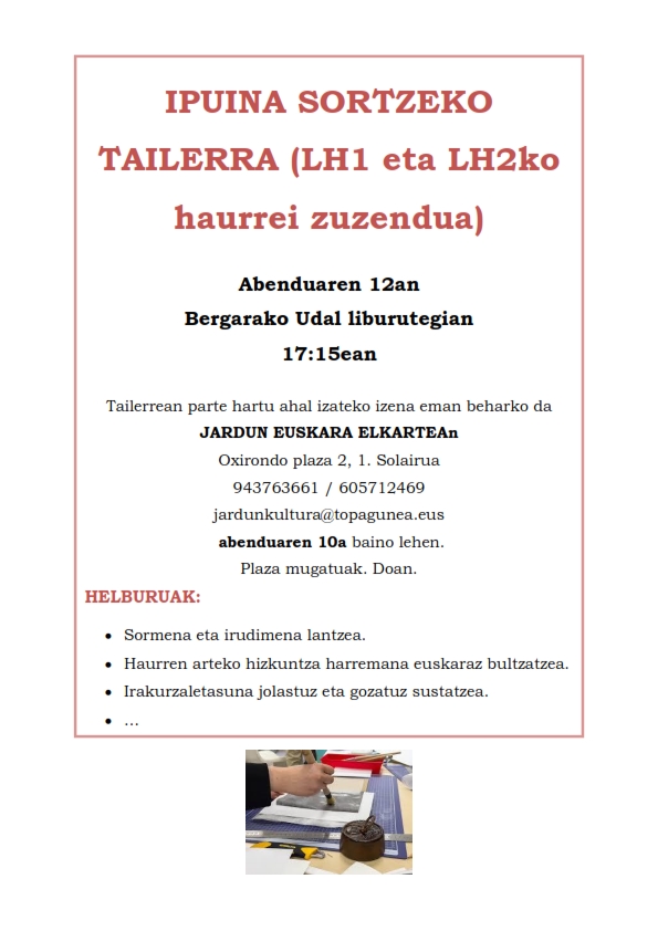 Interesa dauzazula? Ba deitu lehenbailehen Jardun euskara elkartera edota pasatu bertatik eta erreserbatu zure plaza!!