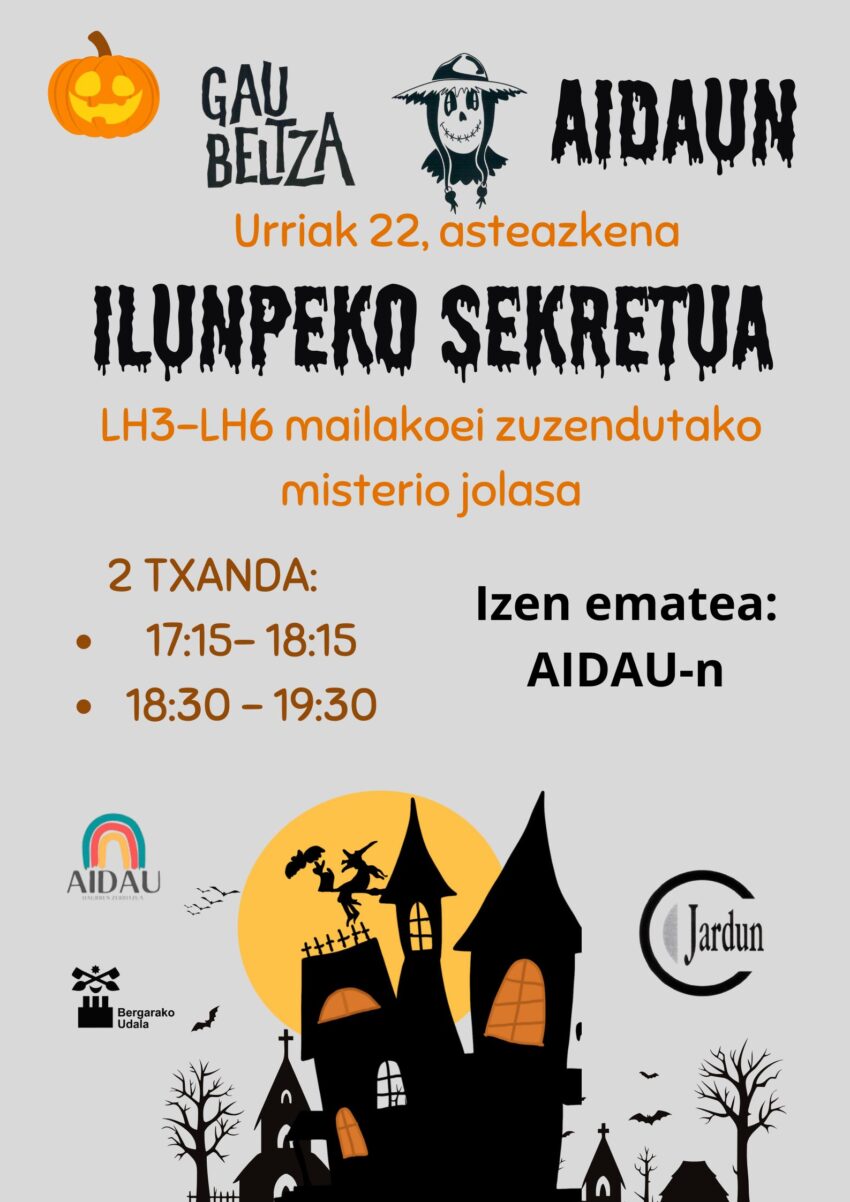 ILUNPEKO SEKRETUA “Misterio jolasa”. Parte hartu nahi? Ba, eman izena AIDAUn Posted on 2025/10/17 by jardun Elkarbanatu:TwitterFacebookEmail