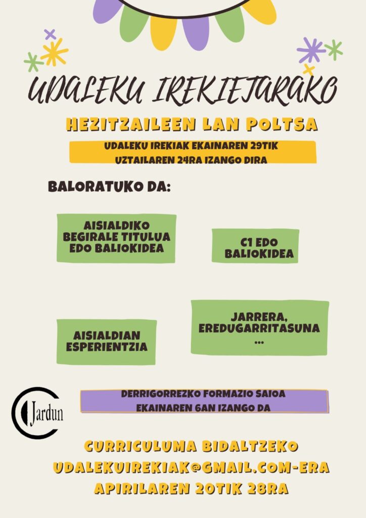 UDALEKU IREKIETAN LAN EGITEKO HEZITZAILEEN LAN POLTSA ZABALIK